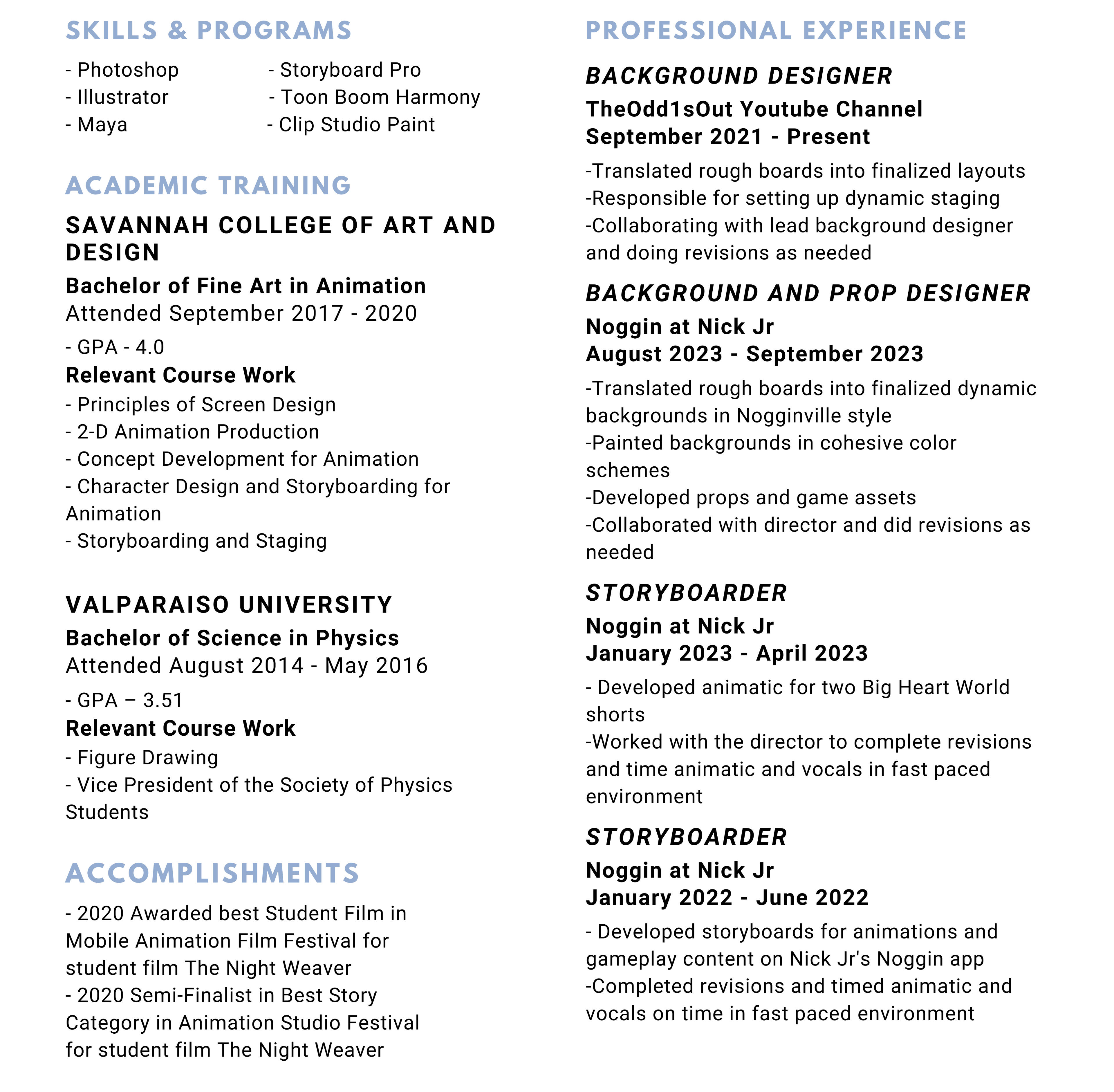 I'm Katelyn, though many people know me as Lenny. I'm a storyboard and background artist originally from Chicago who has been in this industry for 6 years. As a storyboarder I specialize in heartfelt narratives, and as a background artist I excel in complex backgrounds and compositions. Having experience in one area has been vital in making me a stronger and more effective artist in the other. I absolutely adore animation and love being a part of this wonderful industry!